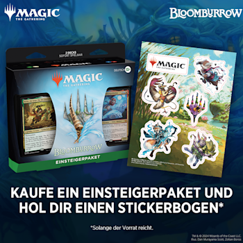 - 6 Bloomburrow-Play-Booster; jeder Play-Booster enthält 14 Magic-Karten
