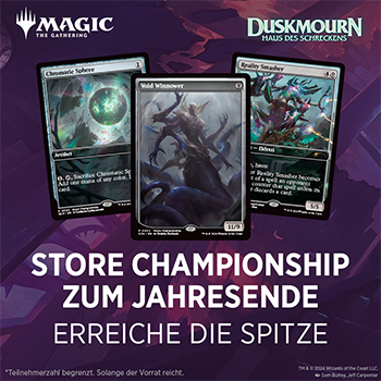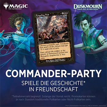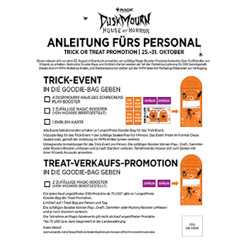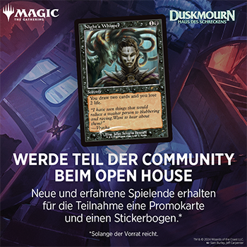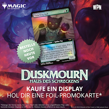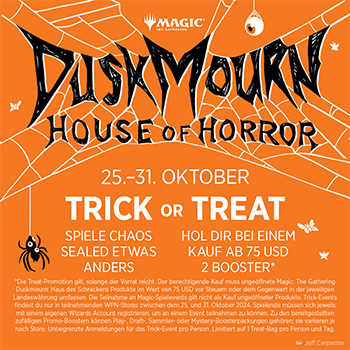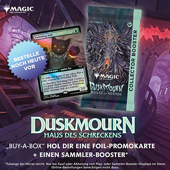In Duskmourn: Haus des Schreckens wagen sich die Spielenden in dieses Spukhaus, das eine ganze Welt umfasst und in dem ihre tiefgründigsten Ängste zum Leben erwachen. Das Böse manifestiert sich in Nachtmahren und Störungsgeistern und macht Spielzeug und Schatten zu tödlichen Gefahren. Möglicherweise sehen sich Spielende sogar mit dem Bösen in sich selbst konfrontiert, aber sie werden für ihren Mut belohnt. Laden Sie sie zum Mitspielen ein – falls sie bereit sind, es zu riskieren.