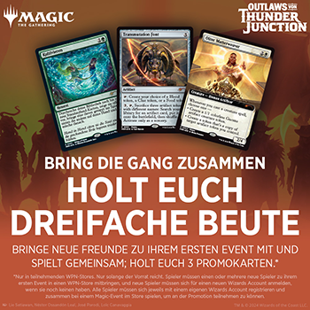 In Outlaws von Thunder Junction schließen sich Ihre Spieler Okos Bande tödlicher Desperados an, die in der Grenzwelt Thunder Junction einen Raubzug planen. Sie werden mit rauen Wüsten, feindlichen Tieren und sogar rivalisierenden Outlaws konfrontiert – aber mit Mut und Entschlossenheit reiten sie in den Sonnenuntergang.