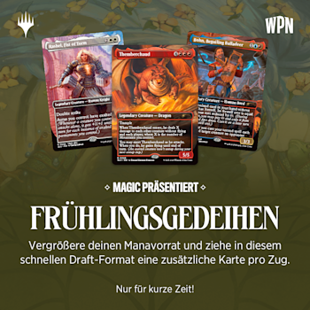 Gehöre zu den Ersten, die Drachen mit Drachen bekämpfen, und spiele Tarkir: Drachensturm schon vor dem Erscheinungstag. Nimm ab dem 4. April an einem Prerelease-Event teil und kämpfe um die Vorherrschaft deines Klans auf Tarkir. Für Tarkir: Drachensturm gibt es fünf verschiedene Prerelease-Packs – eins für jeden Klan von Tarkir –, sodass du in mehreren Events immer wieder zu deinem Lieblingsklan greifen oder sie alle ausprobieren kannst.