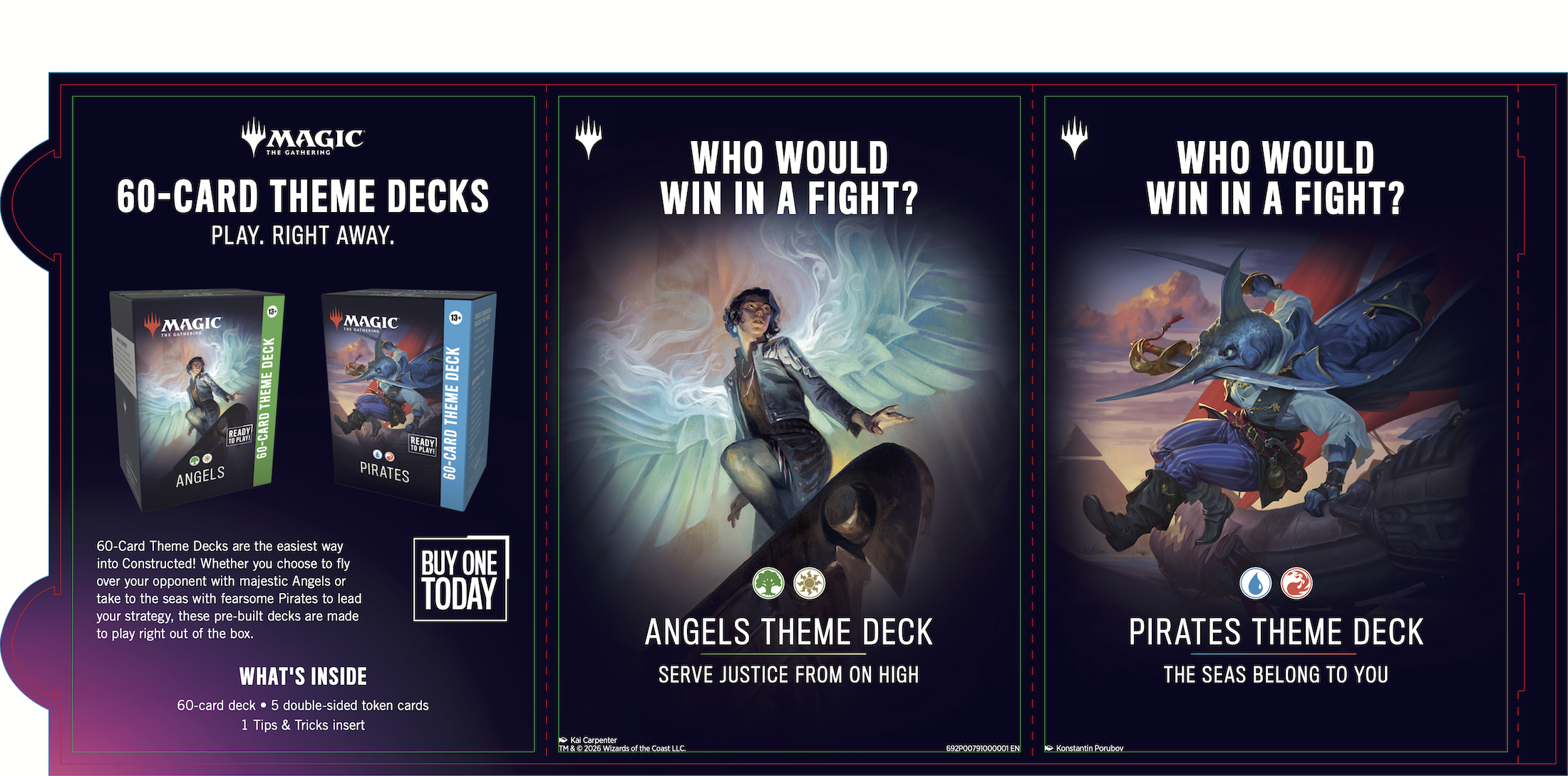 - 60-Card Theme Decks signage introduces players to the two preconstructed deck products available: Angels and Pirates.