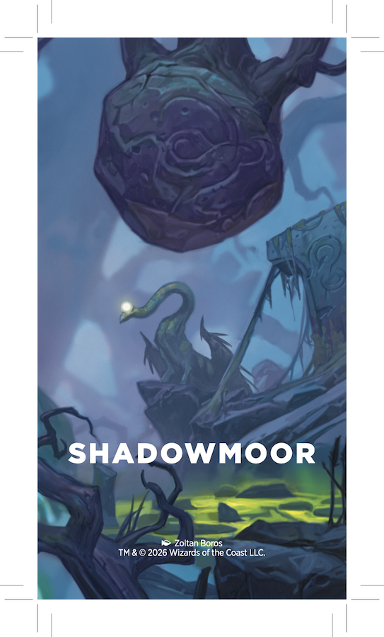 For the Lorwyn Eclipsed Commander Party, players will journey between the Lorwyn and Shadowmoor sides of the plane, playing two different hands and gaining a random effect before each combat based on which side they're currently on! Players place their second hands in the designated spots around the play aid, while the indicator card is used to identify which side of the plane is active.
