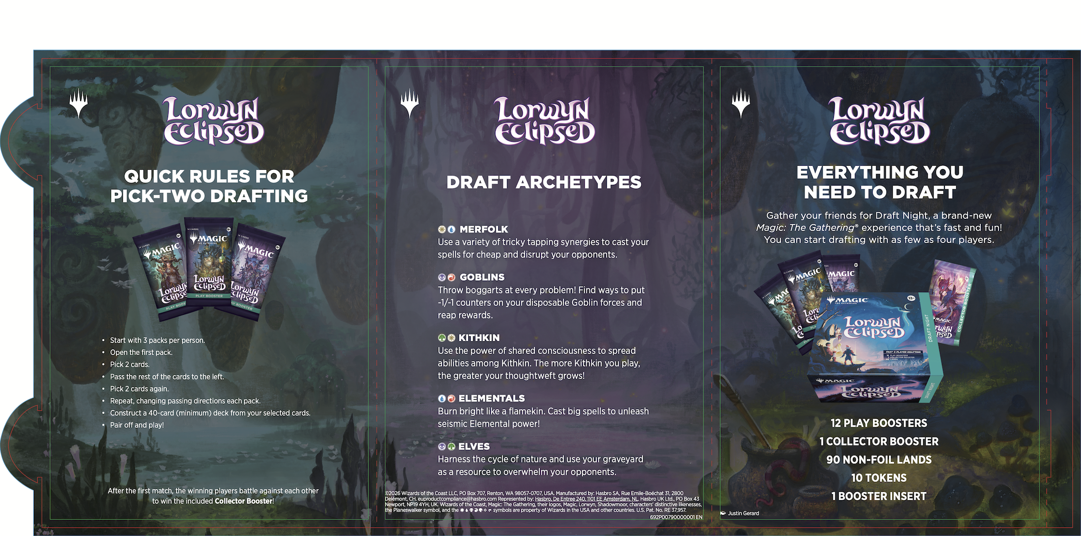 - Pick-Two Draft signage offers rules for playing the format, guidance on draft archetypes for Lorwyn Eclipsed, and a promotion for the Draft Night product.