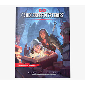 Candlekeep Mysteries is a collection of seventeen short, stand-alone D&D adventures designed for characters of levels 1–16. Each adventure begins with the discovery of a book, and each book is the key to a door behind which danger and glory await. These adventures can be run as one-shot games, plugged into an existing Forgotten Realms campaign, or adapted for other campaign settings. This book also includes a poster map of the library fortress and detailed descriptions of Candlekeep and its inhabitants.