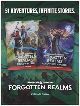 EXPLORE THE EXPANSIVE FORGOTTEN REALMS—Take your far-reaching campaign in new directions with 5 new mini-settings, each with unique themes, from frigid survival horror to genie-inspired high magic to dark urban fantasy.