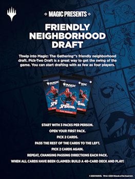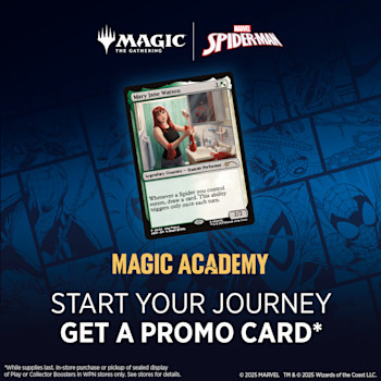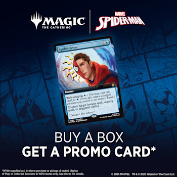 Your friendly neighborhood Spider-Man swings into Magic: The Gathering, and not a moment too soon! Gather web-slingers from across the Spider-Verse and team up to take down the sinister foes that threaten the city. Keep your Spider-Senses primed to spot Borderless treatments that leap right off the page!