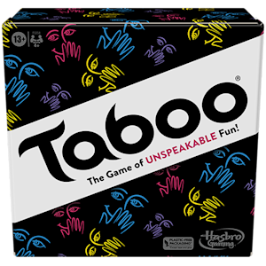 It’s the game of unspeakable fun! In the Taboo game, get your team to say the Guess word without saying any of the forbidden words! Who can get teammates to say "Fame" without being able to say "Celebrity," "Superstar," "Musical," "Known," or "Fortune"? This Taboo party board game features 212 cards with 848 relatable Guess words from pop culture, trends, and more. Players try to give creative and carefully worded clues to help team members guess words fast as they race against the timer. Just don't mention unmentionables, or it's time for the squeaker and you lose that point. This funny party game for adults and teens ages 13+ is an exciting pick for Family Game Night. It also makes one of the best game night games for groups. With this travel game you can take the card box and use the online tools to play the Taboo game almost anywhere! Teen and adult board games make great gifts for families.
