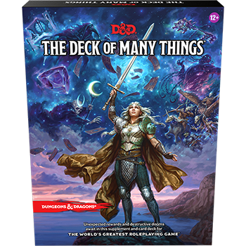 The Deck of Many Things is a famous Dungeons & Dragons magic item whose effects are as spectacular as they are unpredictable. Within this box, you’ll find The Book of Many Things, which illuminates the deck’s mysteries and provides everything Dungeon Masters need to use it in their campaigns. This book includes advice, adventure locations, and new monsters for Dungeon Masters, as well as character options, magic items, and organizations for players, all inspired by the deck.
