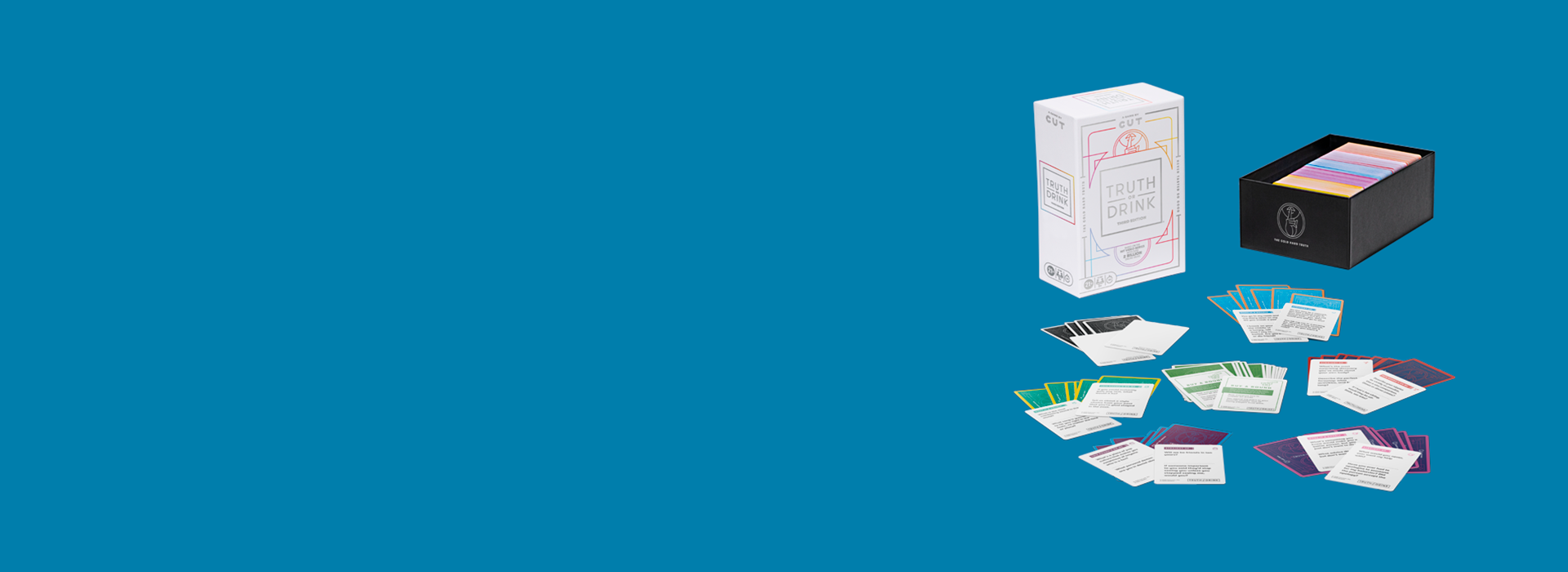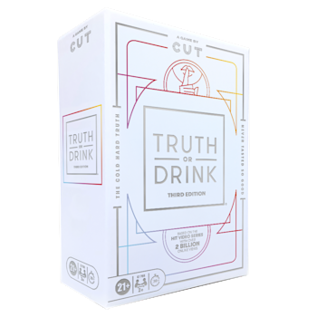 "It’s time for another toast to the truth. Based on the hit video series, the Truth or Drink game is the card game of honesty and hydration. Test your friends’ and family’s abilities to confront the cold, hard truth. No topic is off-limits, and there’s nowhere to hide. Will you spill the truth or take a sip? (Alcohol consumption is not required to play this game.) With over 2 billion views on YouTube and countless viral clips on TikTok, the Truth or Drink game is sure to make some memorable stories at your next get-together. Includes 295 question cards, 16 Buy a Round cards, and 5 customizable cards. Cut card games are hysterical adult party games for game night, and NSFW games make great gifts for adults ages 21 and up. For more daring fun, look for the Truth or Drink: Sin game, Truth or Drink: Bachelorette Party game, Truth or Fear game, and Fear Pong game. Truth or Drink is a registered trademark of Cut.com, Inc. Hasbro and all related trademarks and logos are trademarks of Hasbro, Inc."
