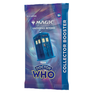 Each Universes Beyond: Doctor Who™ Collector Booster contains 15 Magic: The Gathering cards and 1 Traditional Foil double-sided token, with a combination of 5 cards of rarity Rare or higher and 4 Uncommon, 5 Common, and 1 Land cards. Every pack contains a total of 12 Foil cards.