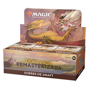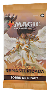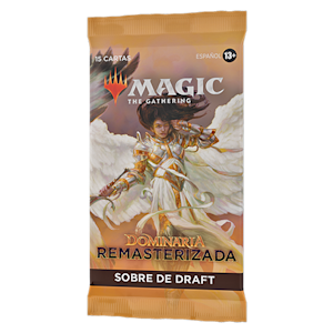 Cada sobre de Draft de Dominaria remasterizada contiene 15 cartas y 1 ficha/carta publicitaria, incluidas una carta rara o de una rareza superior, entre 2 y 4 cartas poco comunes, entre 9 y 11 cartas comunes y 1 carta de tierra retro. Una carta foil tradicional de cualquier rareza sustituye a una carta común en el 33 % de los sobres.