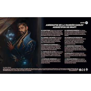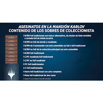 - 6 sobres de juego de Asesinatos en la mansión Karlov, cada uno con 14 cartas de Magic.