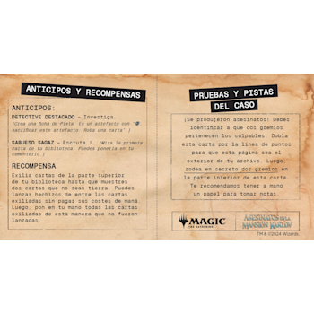 ¡Asesinatos, misterios y Magic! Una oleada de inquietantes asesinatos asola el plano de Rávnica. Tus jugadores se pondrán en la piel de los mejores detectives del lugar para seguir las pistas y resolver el caso. ¿Serán capaces de descubrir el cerebro de la operación antes de que sea demasiado tarde?