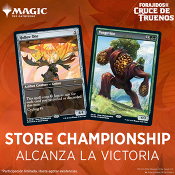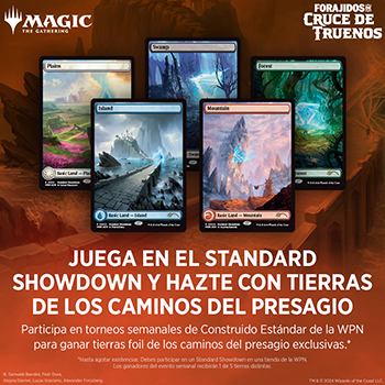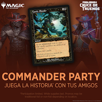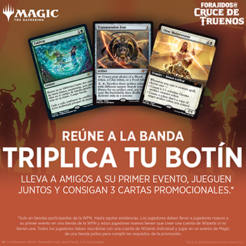 Imagen para redes sociales de la promoción de drafts en tiendas para MTG Arena de Forajidos de Cruce de Truenos