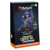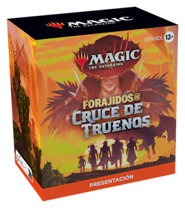 En Forajidos de Cruce de Truenos, tus jugadores se unirán al equipo de desperados mortíferos de Oko y tramarán junto a ellos un atrevido golpe en el mundo fronterizo de Cruce de Truenos. Se enfrentarán a desiertos adversos, criaturas hostiles y forajidos rivales, pero, con coraje y determinación, podrán cabalgar hacia la puesta de sol.