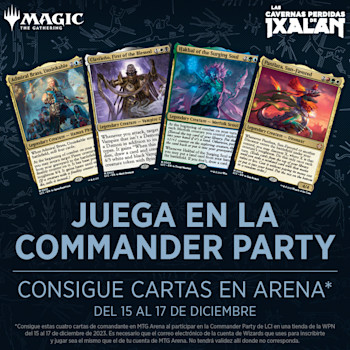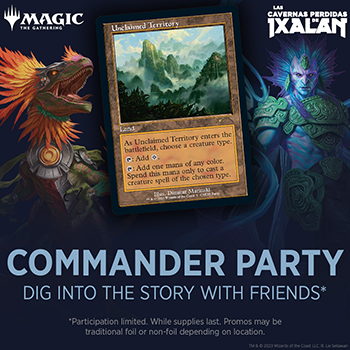 Recursos para redes sociales de la promoción para MTG Arena de la Commander Party de Las cavernas perdidas de Ixalan