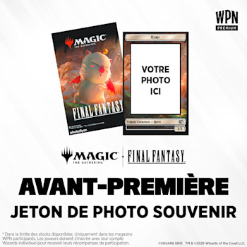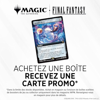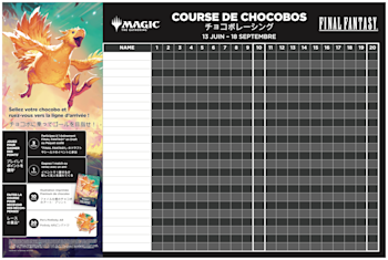 Appel à tous les fans de chocobos ! Célébrez vos fougueux alliés à plumes avec ce charmant bundle, comprenant des terrains de base Chocobo pleine illustration, une carte promo exclusive, un compteur de points de vie à molette Chocobo, ainsi qu’une flopée de boosters de jeu Magic: The Gathering—FINAL FANTASY et d’autres accessoires. Si vous êtes fan de chocobos ou si vous connaissez quelqu’un qui l’est, ce bundle prêt à offrir est ce qui ressemblera le plus à un vrai chocobo ! Ce bundle Chocobo contient 10 boosters de jeu Magic: The Gathering—FINAL FANTASY, un booster Chocobo de 12 cartes, une carte promo Premium traditionnelle à illustration alternative, une carte scénique sans bordure Magic: The Gathering—FINAL FANTASY sur un total de 24, 32 terrains de base pleine illustration Paysage FINAL FANTASY (16 en Premium traditionnel, 16 en standard), un compteur de points de vie à molette exclusif et une boîte de rangement Chocobo. Le booster Chocobo renferme 10 terrains de base Chocobo pleine illustration et 2 cartes sans bordure propres au bundle Chocobo de rareté rare ou supérieure. Ce produit ne contient pas de carte Chocobo doré (disponible uniquement dans les boosters collector en anglais).