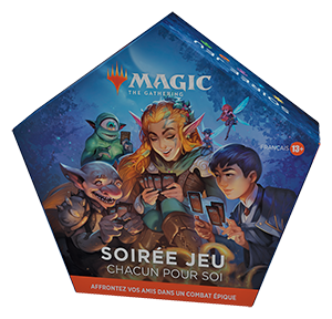 Soirée jeux : chacun pour soi contient tout ce dont vous avez besoin pour défier vos amis et votre famille dans des batailles épiques et magiques. Soirée jeux est un condensé de toutes les sensations fortes d'une bataille magique où tout est permis dans une seule et même boîte. Choisissez l'un des cinq decks, chacun avec ses caractéristiques propres, et affrontez vos amis et votre famille dans des parties endiablées en un contre un ou en multijoueurs.