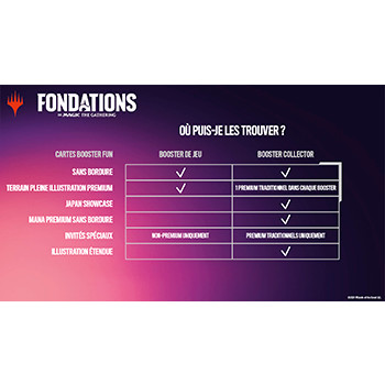 C'est le meilleur moment pour la première partie de Magic de votre communauté. Plongez dans Fondations et découvrez le summum de Magic: The Gathering avec des cartes choisies pour que chaque joueur y trouve son bonheur. Que vous soyez un ancien joueur, un joueur actif, ou un futur joueur de Magic, Fondations vous invite à partager votre passion !