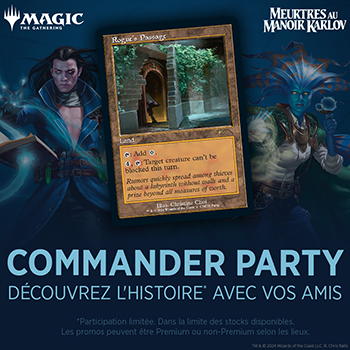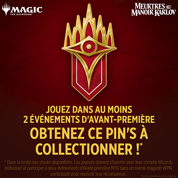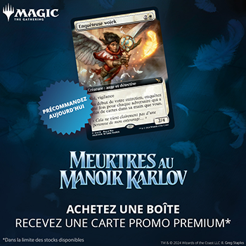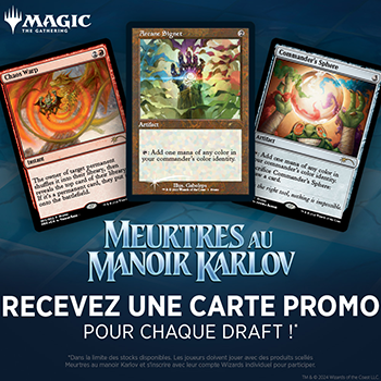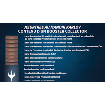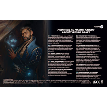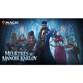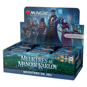 - 6 boosters de jeu Meurtres au manoir Karlov ; chaque booster de jeu contient 14 cartes Magic