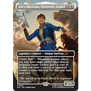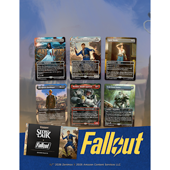 Pour la toute première fois, les survivants de la série Fallout de Prime Video arrivent dans Magic avec des cartes inédites. Lucy MacLean apporte une dose d’optimisme sur le champ de bataille avec La règle d’or, une capacité jouable une fois par tour qui vous permet d’échanger des jetons contre des effets de pioche. La Goule se nourrit de la mort en accumulant des marqueurs « radiation » pour meuler ou annihiler ses adversaires. Et si vous êtes d’humeur audacieuse, vous pouvez subir la radiation vous mêmes pour engranger des ressources. Et Maximus, fidèle parmi les fidèles, tire sa force de la ferraille en faisant le plein d’énergie pour alimenter son Armure assistée T-60.