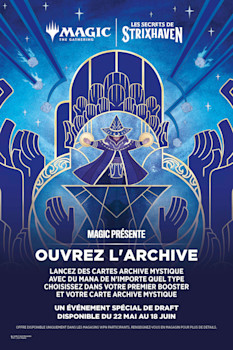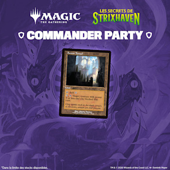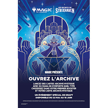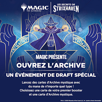 Représentez fièrement votre école avant la sortie de l’extension ! Participez à un événement d’Avant-première pour recevoir un Pack d’avant-première et faire partie des premiers à choisir votre école et révéler les secrets de Strixhaven. L’Avant-première Les secrets de Strixhaven propose cinq Packs d’avant-première à thème, chacun aligné avec l’une des cinq universités de Strixhaven et contenant un dé Spindown à thème, un booster classé et une carte Premium traditionnelle rare ou rare mythique de l'extension.