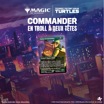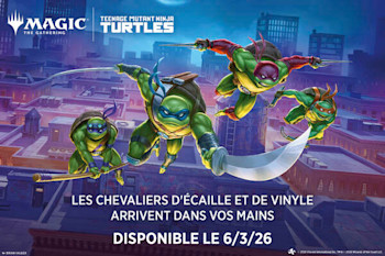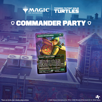 Magic: The Gathering reçoit une quadruple dose de chaos mutagénique, car les Tortues Ninja font leur arrivée sur le champ de bataille ! Collectionnez, construisez et combattez avec une équipe emblématique d'alliés et d'ennemis, issues de quatre décennies de tortue-mania. Prenez le dessus sur les sbires de Shredder avec la toute nouvelle mécanique d'infiltration, puis augmentez la force de votre équipe avec des jetons Mutagène pour triompher et devenir les véritables héros de New York !