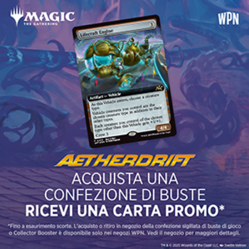 - 6 buste di gioco di Aetherdrift; ogni busta di gioco contiene 14 carte di Magic