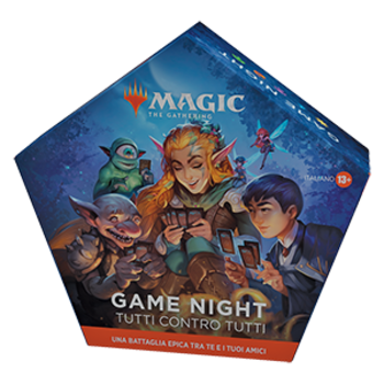 Game Night: Free-for-All contiene tutto ciò che ti serve per sfidare amici e famiglia in grandiose battaglie magiche. La Game Night raduna tutta l’emozione di una competizione magica irrefrenabile e la racchiude in un’unica confezione. Scegli uno dei cinque diversi mazzi, ognuno con la propria personalità, e combatti contro i tuoi amici e familiari in battaglie uno contro uno o scontri multiplayer.