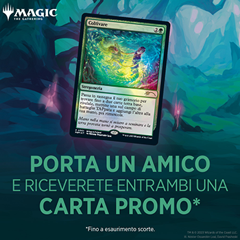 Il Kit Iniziale 2023 di Magic: The Gathering è ideale per ogni coppia di nuovi giocatori di Magic che decide di varcare la soglia del tuo negozio, perché offre loro l’opportunità di iniziare la loro prima partita faccia a faccia (e di continuare a divertirsi online con le carte con codice riscattabili in regioni selezionate per Magic: The Gathering Arena).