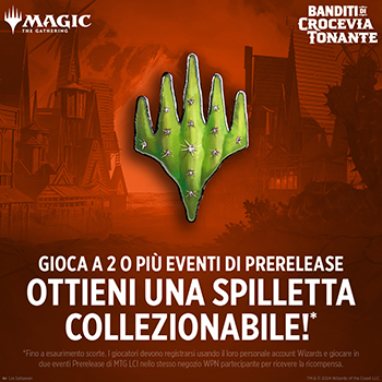 Promozione delle spillette per la partecipazione a più eventi di Prerelease di Banditi di Crocevia Tonante
