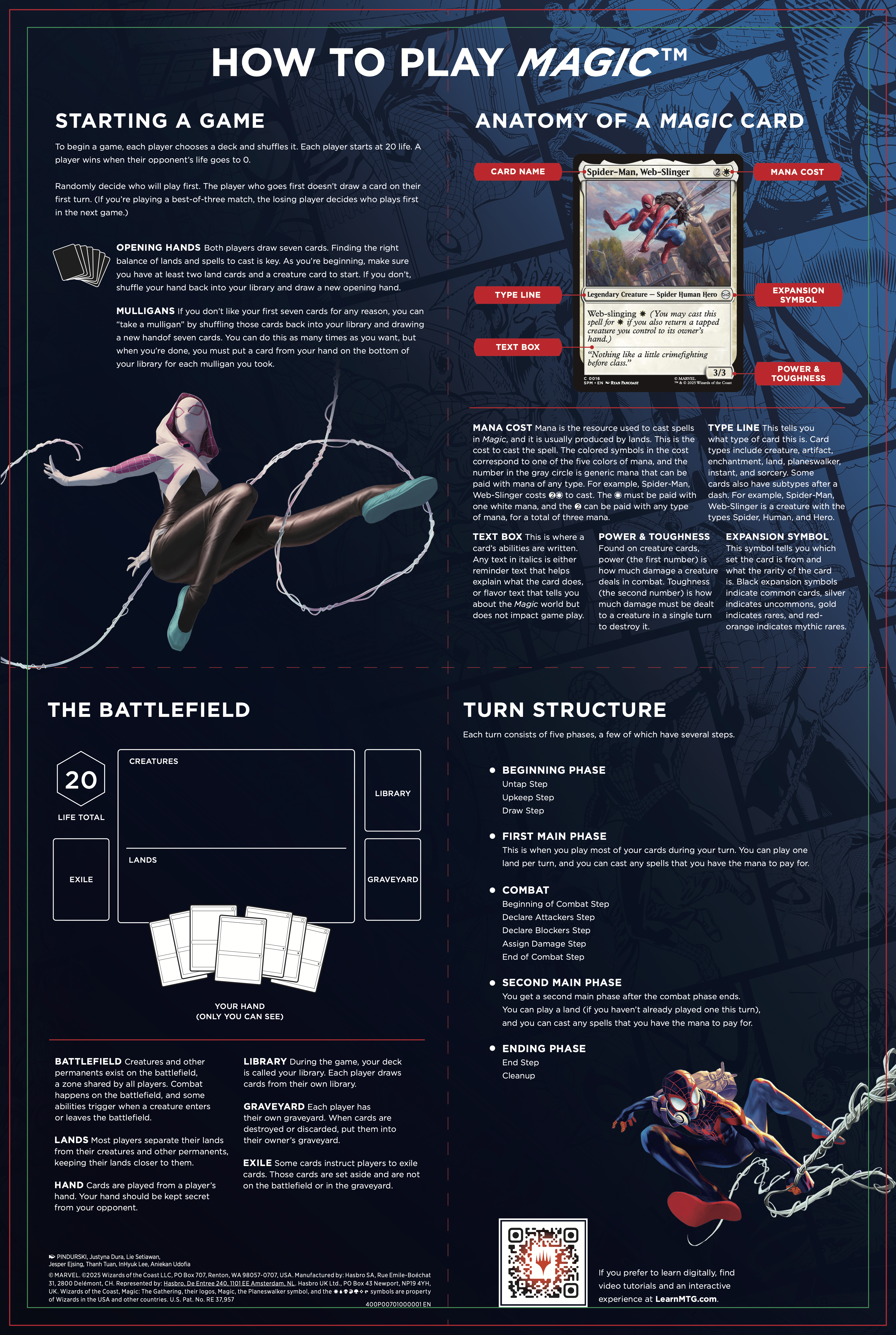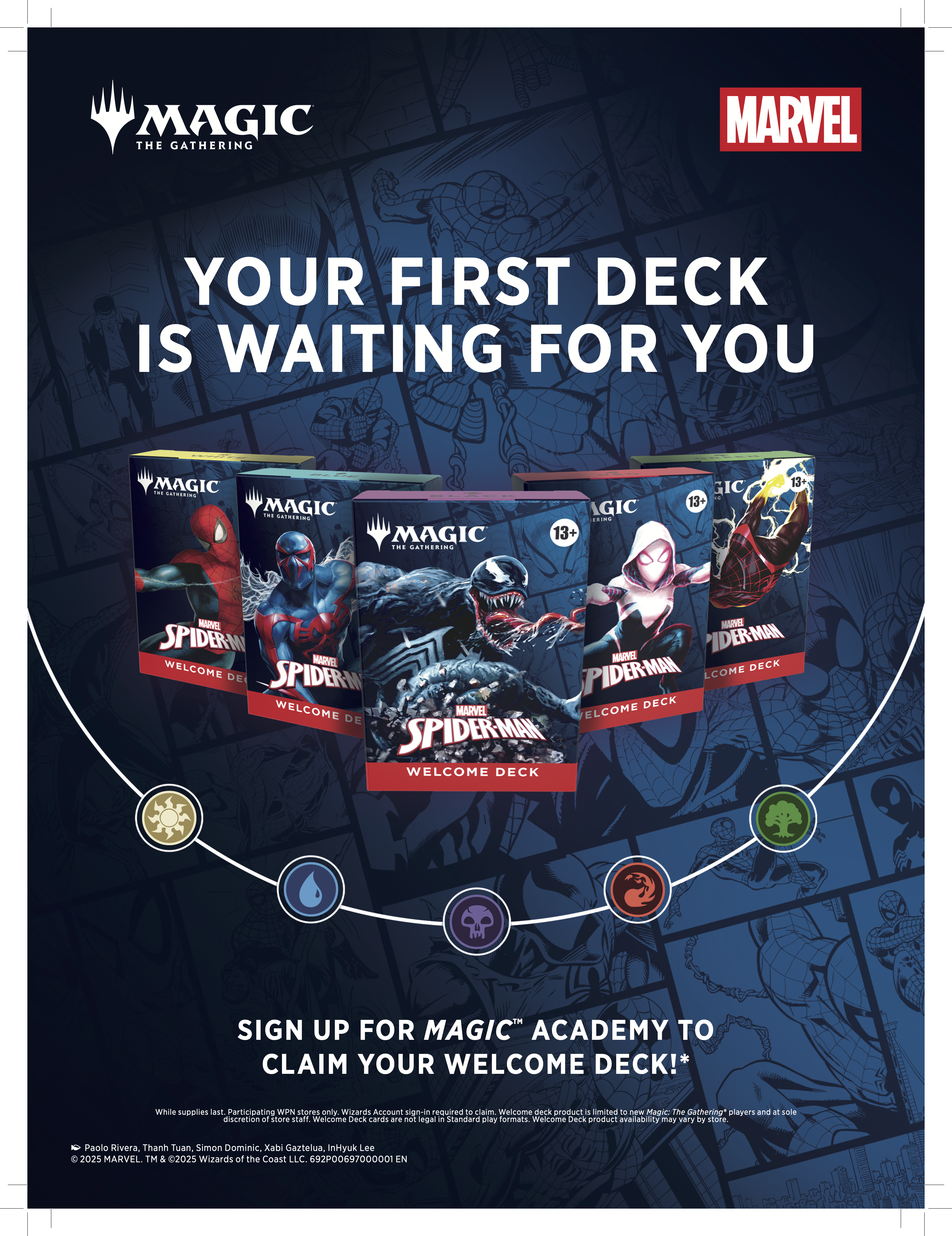 このセットをテーマにしたウェルカム・デッキや「マジックの遊び方」パンフレットは、「マジック・アカデミー:マジックの遊び方」イベントでの利用におすすめな、楽しくわかりやすいティーチング・ツールです。特に今回は糸を使ったアクション満載なので、「スパイダーマン」に惹かれた新規プレイヤーがマジックを学ぶのにうってつけでしょう。