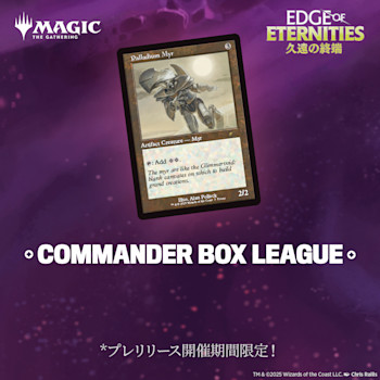 - プレイ・ブースターからは、EOEの1~316番、EOSの1~45番、SPGの119~128番のカードが出現します。各プレイ・ブースターには、レア以上のカード1~4枚(2枚:30%、3枚:3%、4枚:1%未満)、アンコモンのカード3~5枚、コモンのカード6~9枚と土地カード1枚が入っています。いずれかのレアリティのカード1枚はフォイル仕様です。1%未満の確率で、神話レアのフォイル仕様ボーダーレス版神カードが出現します。20%の確率で、土地の代わりにフォイル仕様の土地が出現します。