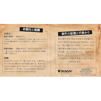 殺人事件!ミステリー!マジック!ラヴニカ次元で連続殺人事件が発生しました。貴店のプレイヤーたちはラヴニカ最高の探偵になりきり、手掛かりを追って真相を暴くことになります。果たして手遅れになる前に、黒幕を突き止めることができるでしょうか?