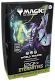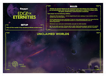 - Play Boosters may contain these cards: EOE 1–316; EOS 1–45; SPG 119–128. Each Play Booster includes 1–4 cards of rarity Rare or higher (2: 30%; 3: 3%; 4: <1%), and 3–5 Uncommon, 6–9 Common, and 1 Land cards. 1 card of any rarity is Traditional Foil. Foil Borderless Mythic in <1% of boosters. Traditional Foil Land replaces a Land in 20% of boosters.