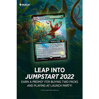 Each Jumpstart 2022 Booster contains 1 insert indicating the pack’s theme and 20 Magic cards revolving around that theme, including 1 card with anime-inspired art, a total of 1–2 cards of rarity Rare or higher, and all the lands you need to play. To play with even more wild theme combos, Jumpstart 2022 Boosters can be combined with packs from any other Jumpstart product.