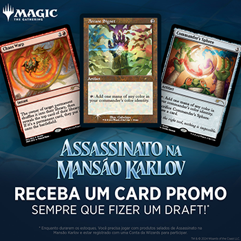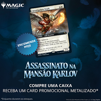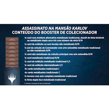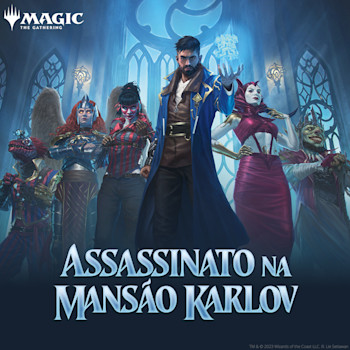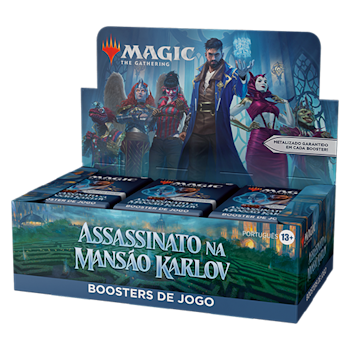 - 6 Boosters de Jogo de Assassinato na Mansão Karlov; cada Booster de Jogo contém 14 cards de Magic