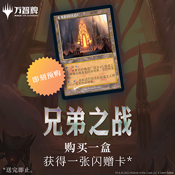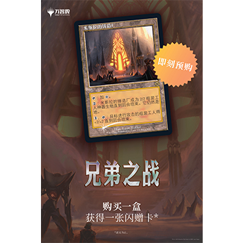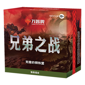 兄弟之战售前组合内含6包兄弟之战轮抽补充包,1张带闪戳记的稀有或密稀牌,1张《万智牌:竞技场》代码卡(仅部分地区可用),1个牌盒和1个Spindown生命计数器。