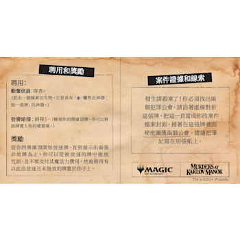 - 6包卡洛夫莊園謀殺案常規補充包;每包含有14張魔法風雲會牌張