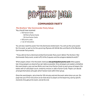 兄弟之戰售前組合內含6包兄弟之戰輪抽補充包、1張稀有或秘稀戳記閃卡、1張《魔風競技場》兌換碼卡片(僅限特選地區)、1個套牌盒和1個Spindown生命計數器。