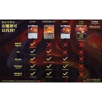 - 內容——6包魔戒:中土世界傳奇輪抽補充包、1張有年份戳記的閃稀有或秘稀牌、1張有年份戳記的閃贈卡、1張輔助用牌、1張《魔風競技場》兌換碼卡片(僅限特選地區)、1個套牌盒、1顆Spindown骰子
